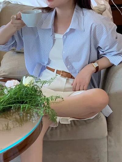 2024秋冬トップス シャツ 襟 スタンダードカラー ストライプ ボタン 長袖 ゆったり 秋 白 青 水色 おしゃれ かわいい 韓国ファッション レディース お出かけ