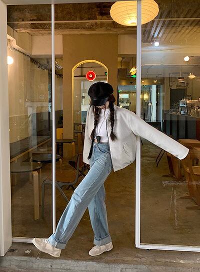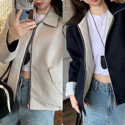 2024 秋冬アウター ジャケット ショートコート リバーシブル ストライプ 長袖 ジップ チャック 襟 秋 白 黒 おしゃれ かわいい 韓国ファッション レディース お出かけ