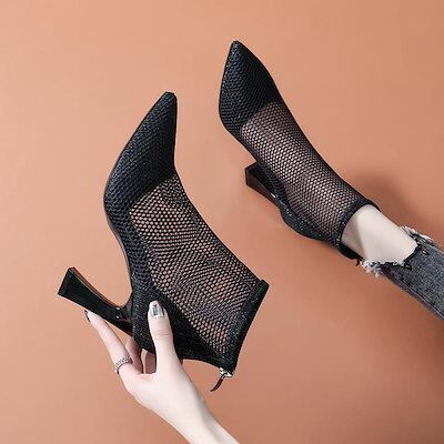 【3日以内出荷】厚底シューズ ヒールパンプススニーカーシューズブーツ厚底ポインテッドトゥ メッシュ ブーツ 2023 春夏 新作 チャンキーヒール ショートブーツ 中空 通気性 マーチンブーツレディー | coolcoool