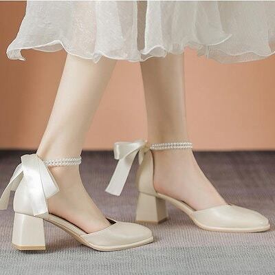 スタイルアップ!ヒールパンプス シングルシューズ2024年春夏新作パールバックシューズリボンハイヒールサンダル パンプス