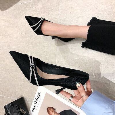 スタイルアップ!ヒールパンプス ヒールパンプス レトロハイヒール2024年新作春秋韓国ファッション尖ったパンプス パンプス