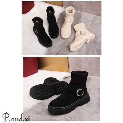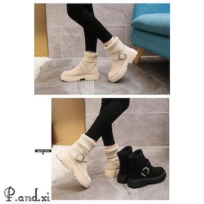 ラウンドトゥ デート 軽い 厚底 ローヒール 秋冬 美脚 疲れない レディース 歩きやすい ワークブーツ 通勤 ショートブーツ ニットブーツ ソックスブーツ
