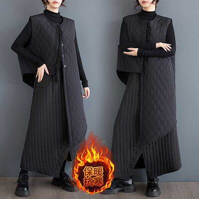 「ファットガール」 2024秋冬新品 中綿ベスト スカート 上下セット 大きいサイズ 体型カバー キルティング 不規則 レディース セットアップ メガ割
