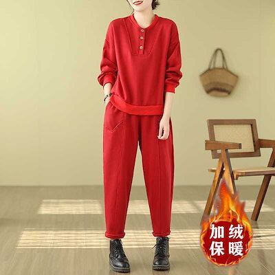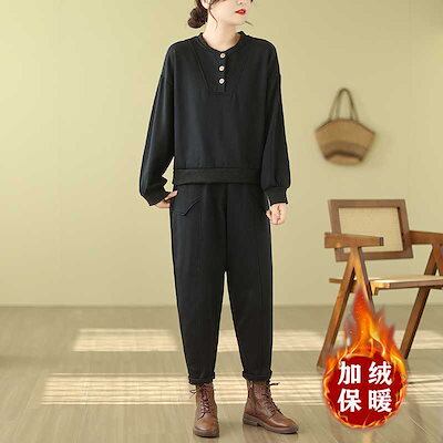 「ファットガール」 2024秋冬新品 裏起毛 上下セット 大きいサイズ 体型カバー レディース 無地 セットアップ メガ割