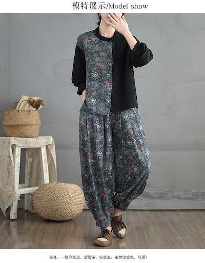 「ファットガール」 2024秋冬新品 上下セット 民族風 綿麻 リネン 大きいサイズ 体型カバー レディース セットアップ メガ割
