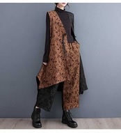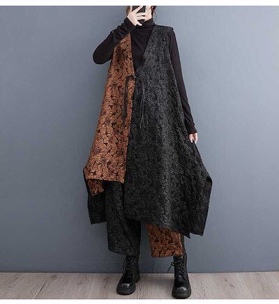 「ファットガール」 秋冬 2セット カーディガン+ワイドパンツ セットアップ レトロ 花柄 ドッキング ロングベスト レディース セット
