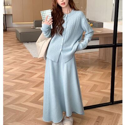 【2枚購入で 2oo円OFF!】秋冬 新作 シンプル 気質 レディースセットアップ ニットカーディガン アウター 二点セット 上下セット セーター ニットスカート セットアップ | coolcoool