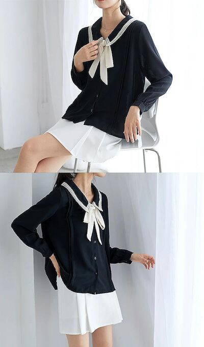 シャツ レディース 秋 ワイシャツ 長袖 リボン ブラウス シフォン ビジネス オフィス フォーマル スーツ 就活 OL 事務服 制服 前開き シンプル おしゃれ リボン結び シフォンシャツ オフィス | coolcoool