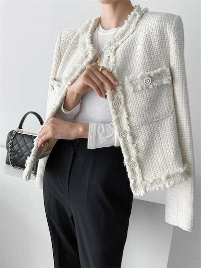 ツイード ジャケット ノーカラー ジャケット レディース セレモニージャケット ショート丈 スーツ ママスーツ おしゃれ フォーマル 発表会 結婚式 通勤 母 OL 入学式 入園式 卒園式 卒業式 3 | coolcoool