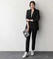 セットアップ 2点セット パンツスーツ レディース スーツ 上下セット フォーマル 黒 パンツ ロングパンツ ジャケット 長袖 通勤 OL 30代 40代 50代 大きいサイズ 着痩せ 春 夏 秋 | coolcoool