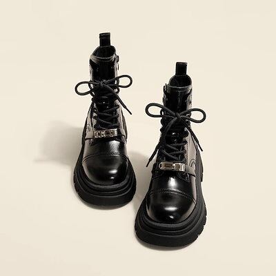 【3日以内出荷】ショートブーツ メタルロックバックル マーティンブーツ 秋 厚底 高い ブーツ レディース 韓国ファッション