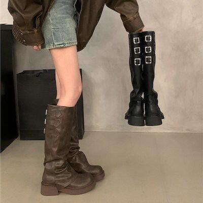 【2枚購入で 2oo円OFF! 】新作 冬 ロングブーツ 厚底靴 シューズ ヒール レディース ブーツ ハイヒールブーツ ーシューズ スエード 黒 スエード調靴 福袋