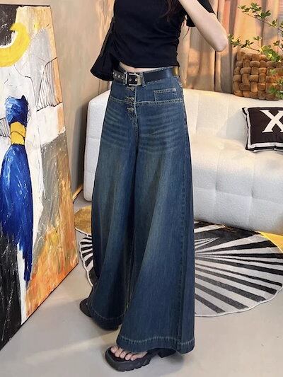 デニムパンツ レディースゆったりカジュアル韓国ファッション ワイドパンツ脚長効果!デニムパンツ