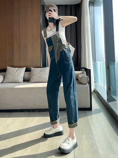 サロペット レトロ デニム サロペット レディー 夏 秋 ハイウエストオーバーオール ゆったり オールインワン ワイドパンツ