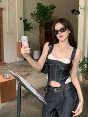 2024 夏ショート丈 キャミソールブラウス ロング丈 パンツ 2点セットスクエアネック 韓国半袖 レッグボトムス トップス 大人可愛いファッションレディースフェミニンカジュアル上下ハイウエスト | coolcoool