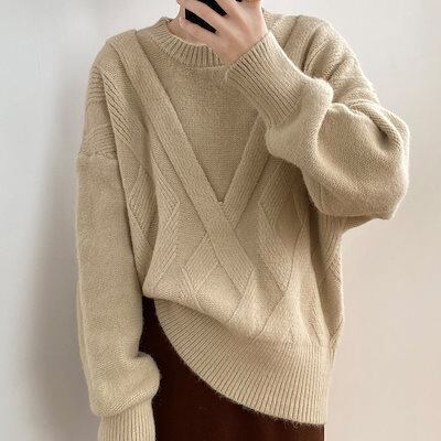 ニットセーター レディース 秋冬 ニット セーター レディース ニットセーター 秋冬 クルーネック おしゃれ 冬 リブニット 長袖 プルオーバー 大人 暖かい 防寒 ゆったり 無地 きれいめ 通勤 | coolcoool