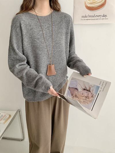 【2024新作】レディース カジュアル ニットセーター ウール100% シンプル クルーネック 秋冬 厚手 トップス ゆったりフィット M/L 3色展開 ルーズシルエット 長袖 防寒 コーディネート | coolcoool