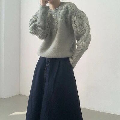 ニット セーター レディース 春 秋 長袖 セーター 立体感刺? 花柄 トップス カットソー きれいめ お洒落 フェミニン 着回し シンプル カジュアル 体型カバー 柔らかい 暖かい オシャレ 女性 | coolcoool