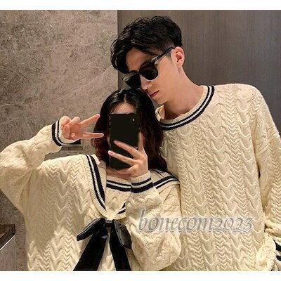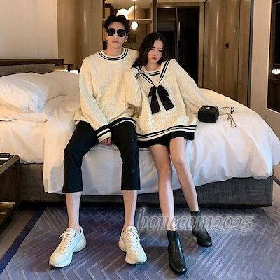 長袖 レジャーセーター セーラー風 上品 おしゃれ 秋冬 カップル 通勤 お揃い 親友 プレゼント ニット クルーネック メンズ レディース ペアルック ペアセーター