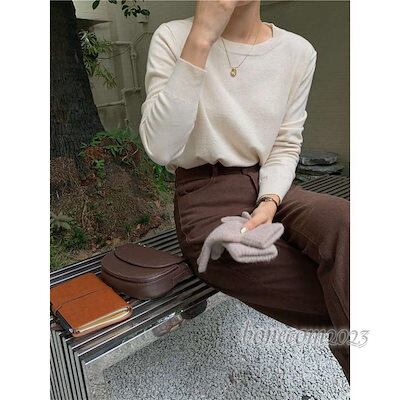 長袖 トップス レディース カジュアル 大人可愛い セーター ニット ベース 秋 代 カットソー 秋冬 おしゃれ きれいめ 無地 春 色 ニット