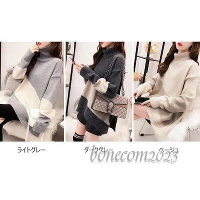 トップス代長袖 ニットソー オシャレ ニットトップス 配色 ハイネックセーター 通勤 秋冬 レディース ニットセーター 着痩せ オシャレ ゆったり 韓国風