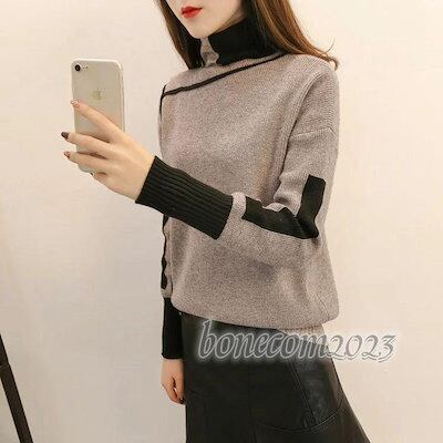 レディース秋冬 韓国風 長袖 色 ニットセーター トップス タートルネック ニットソー ハイネック 配色 通勤 ニットセーター ニットソー 上品