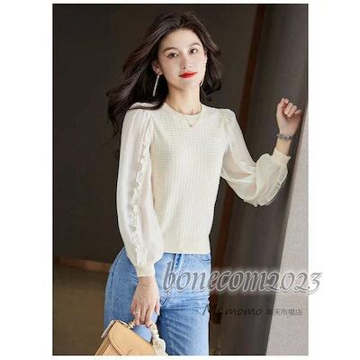 ニットトップス 秋冬代長袖セーター ショット丈セーター ゆったりプルオーバー フレア切り替え オシャレ韓国風 大人ニットインナー レディース
