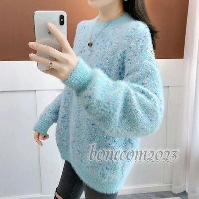 着痩せ おしゃれ ニットトップス 秋冬代長袖 代 体型カバー 厚手 プルオーバー セーター 通勤 レディース ゆったり セーター