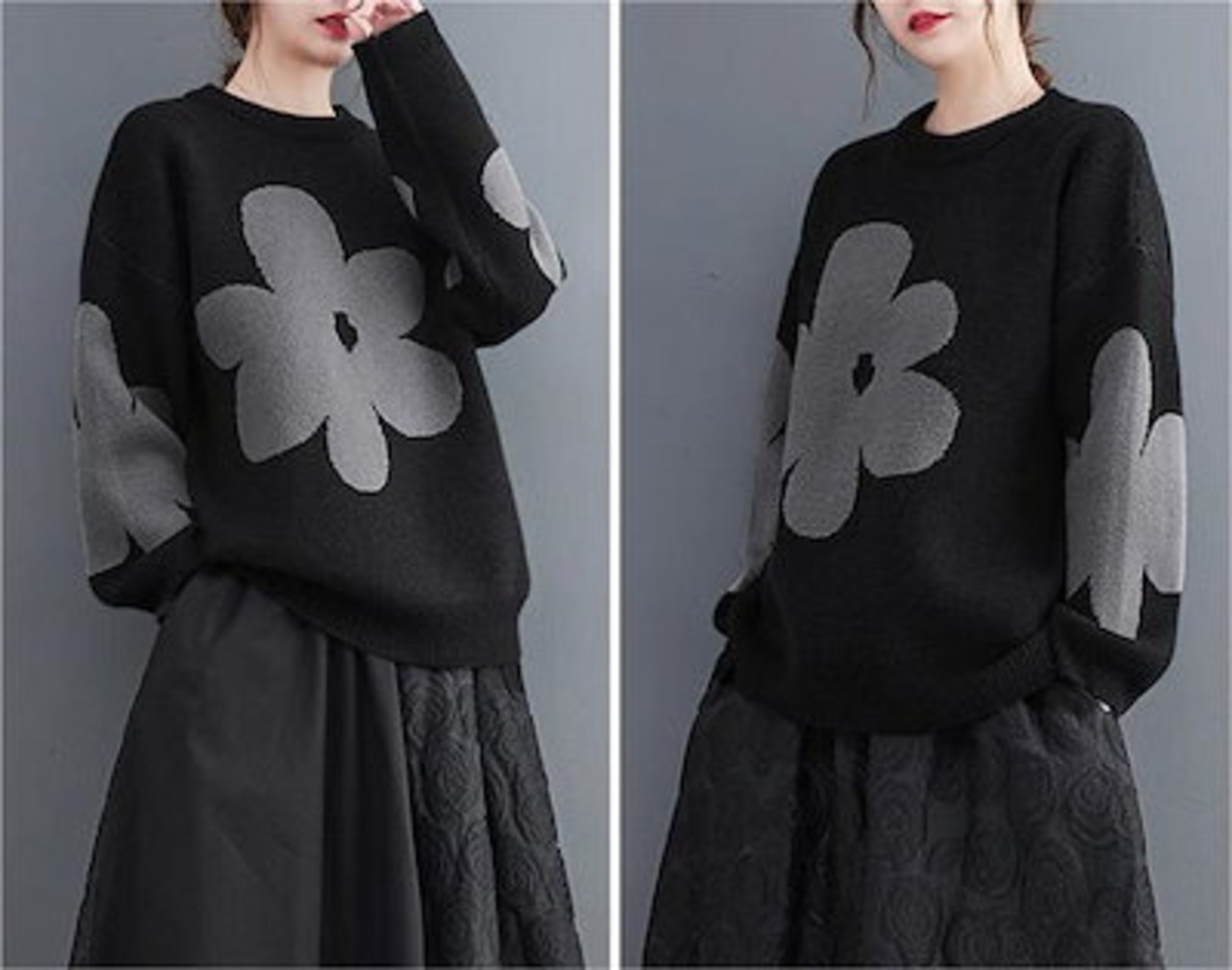 ニット セーター レディース 花柄 セーター ニットセーター レディース 秋冬 クルーネック プルオーバーセーター ニットセーター プルオーバー 上品 秋 冬 秋冬物 通勤 体型カバー 長袖 大人 厚 | coolcoool
