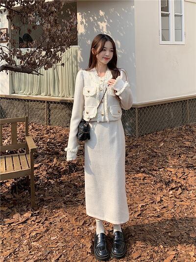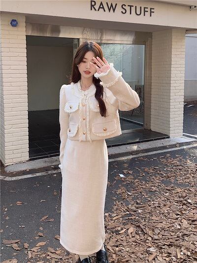 セットアップ 2点セット ジャケット スカートフレンチ パイピング ツイード スーツ 韓国 大人っぽ お出かけ デート フェミニン