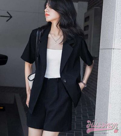セットアップ 半袖 テーラードジャケット ショートパンツ セット ハイウエスト スーツ ハンサムライク カジュアル 美脚 脚長 スタイルアップ きれいめ オフィス OL 通勤 大人ルック 通学 学 | coolcoool