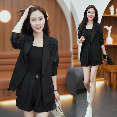 涼しく楽ちんセットアップ レディース夏の日焼け止め気質スーツ2023新作パンツカジュアルゆったり高級感2点セット通勤 韓国ファッション