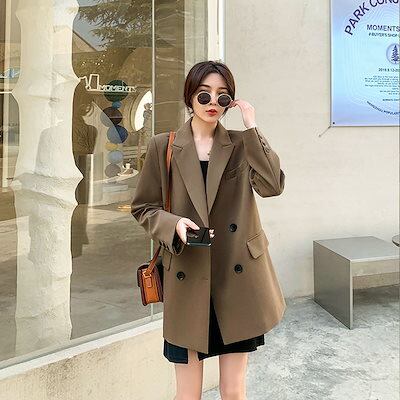スーツジアウター 春 韓国風 ゆったり 学生 気質 スーツ トップス セミロング レディース 春 ジャケット