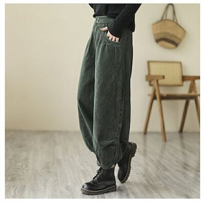 コーデュロイパンツハイウエストワイドボトムスレディース秋冬ウエストゴムコクーンワイドパンツロングコクーンパンツポケット付き脚ゆったりかわいい9分丈大きいサイズ森ガール大人黒ベージュグリーンカジュアル | coolcoool