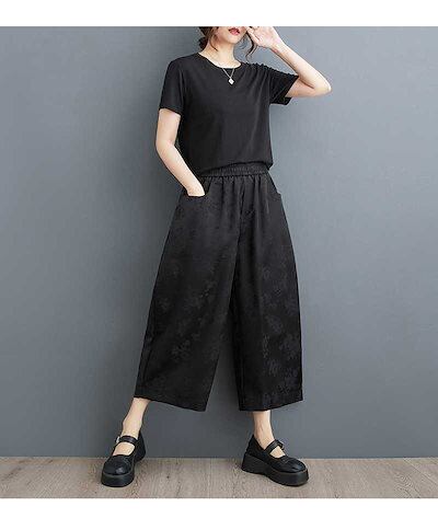 「ファットガール」 2024夏新品 九分丈 ワイドパンツ 花柄 大きいサイズ 体型カバー レディース ゴム ロングパンツ メガ割