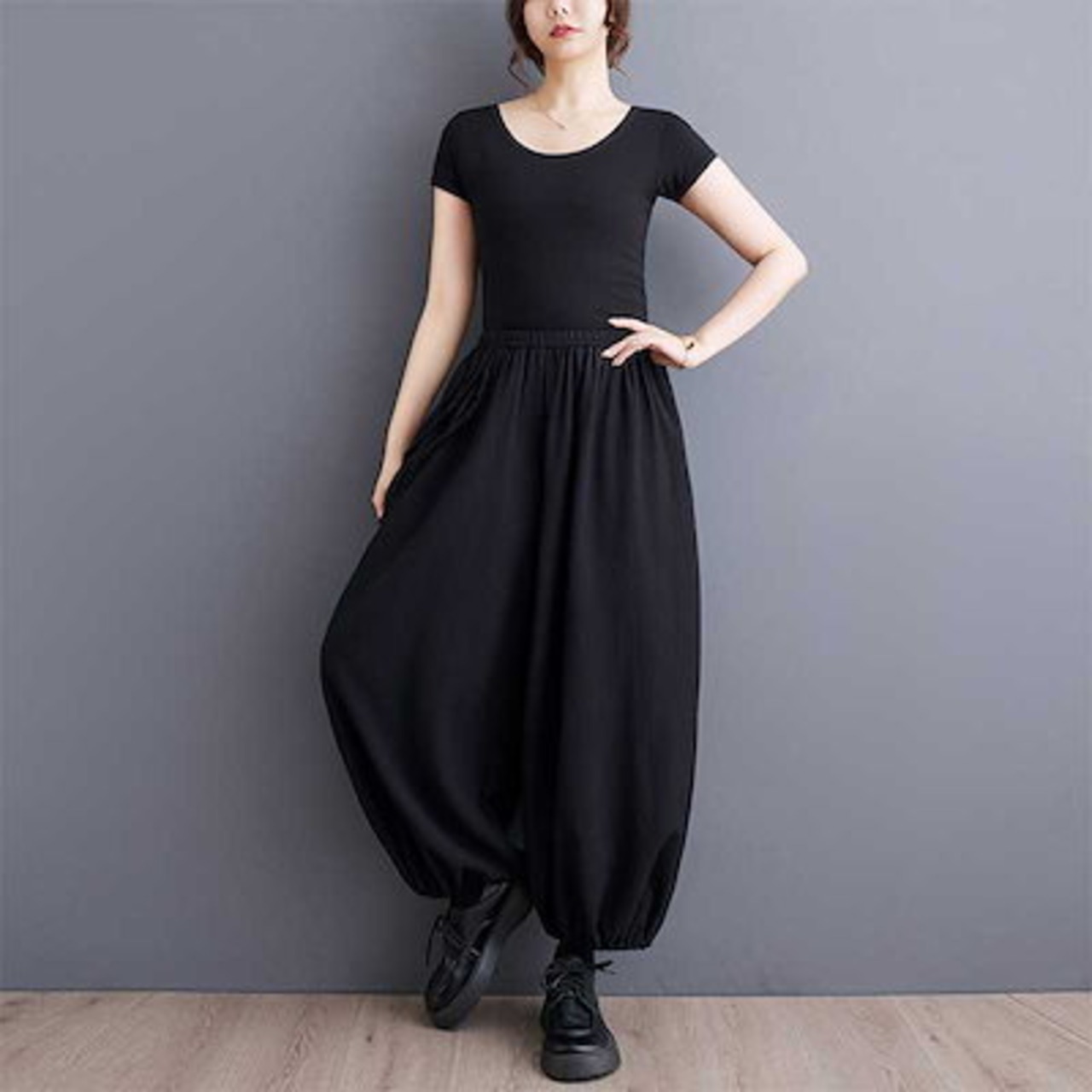 2024春 夏 ロングパンツ 九分丈 テーパードパンツ ゴム ワイドパンツ 体型カバー 大きいサイズ ゆったり レディース