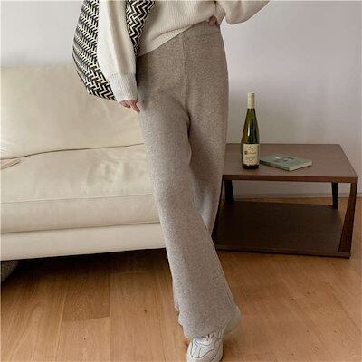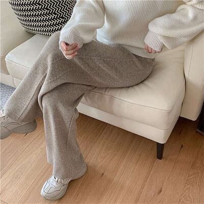レディース ワイド ガチョウパンツ 通勤 ニットパンツ 美脚 ゆったり リブパンツ カジュアル きれいめ ウエストゴム 秋冬 ボトムス 普段着 快適 リラックスパンツ 暖かい ワイドパンツ きれいめ | coolcoool
