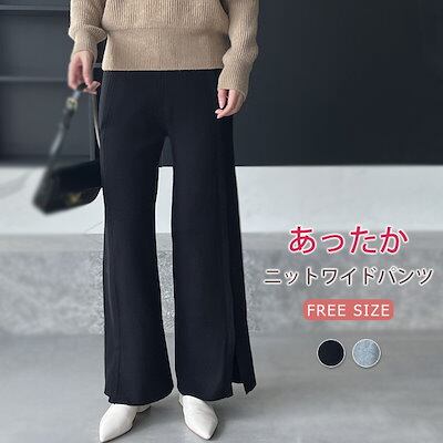 ワイドパンツ 冬 秋 レディース イージーパンツ パンツ 無地 ゆるパンツ 春 ボトムス ウエストゴム スリットパンツ ロングパンツ ロング丈 スリット レイヤード ニットパンツ フレアパンツ リラッ | coolcoool