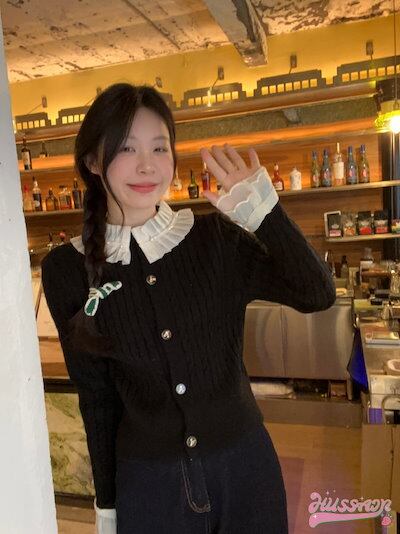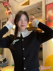 2024春夏トップス ニット セーター カーディガン ボタン レース 長袖 ポエットスリーブ キャンディスリーブ 秋冬 白 黒 赤 韓国ファッション レディース おしゃれ かわいい ガーリー 甘め カ | coolcoool