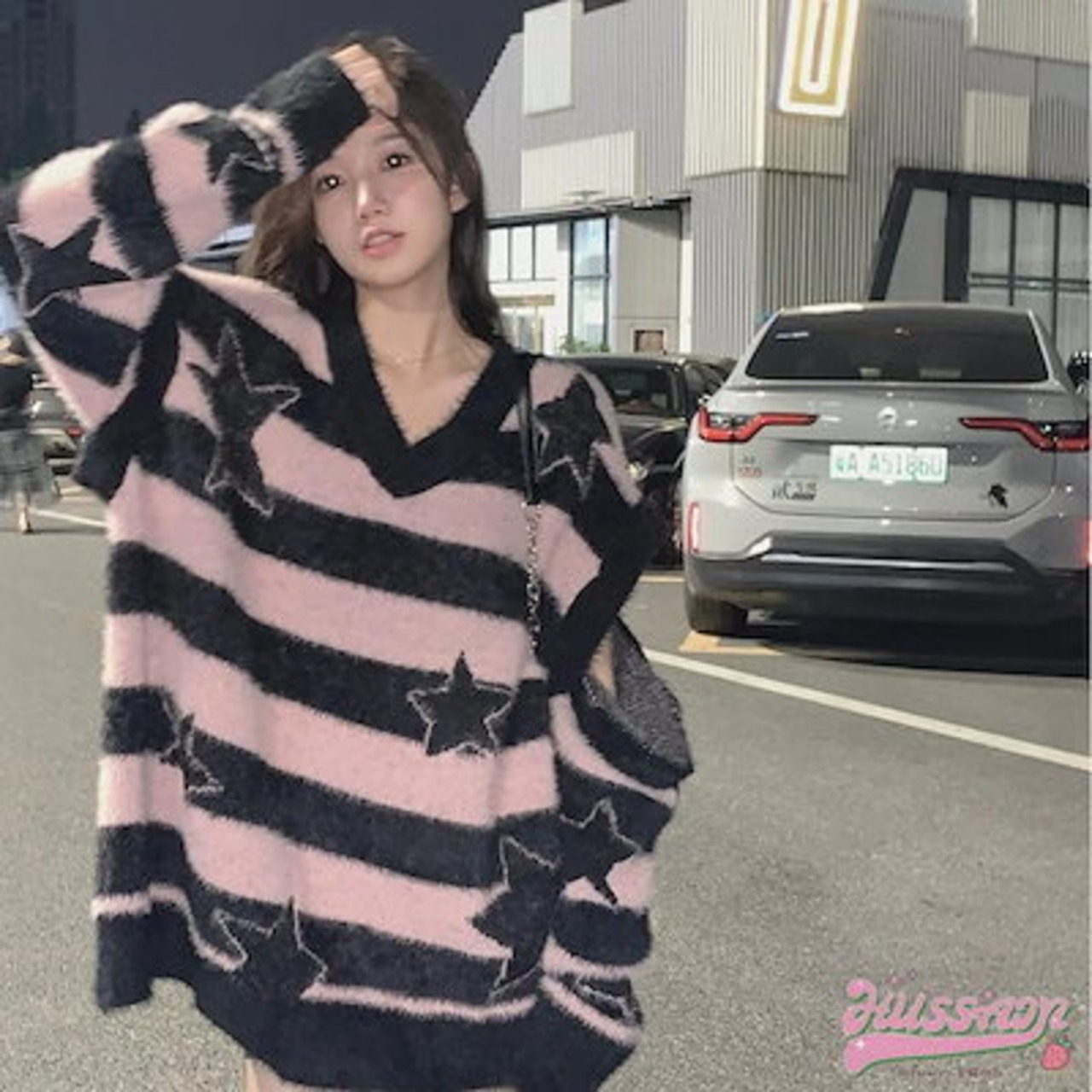 アレンジが楽しめる 2way サイズ ラインニット 半袖 長袖 セーター トップス ストリート カジュアル シルエット ファッション 色っぽ 女っぽ きれいめ ワイド 大人 Vネック ゆったり秋冬春 | coolcoool