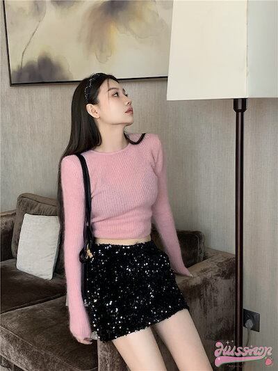 トップス ニット セーター タイアップ バックオープン リボン ラウンドネック 丈短め へそ出し 長袖 春 韓国ファッション レディース おしゃれ かわいい カジュアル お出かけ | coolcoool