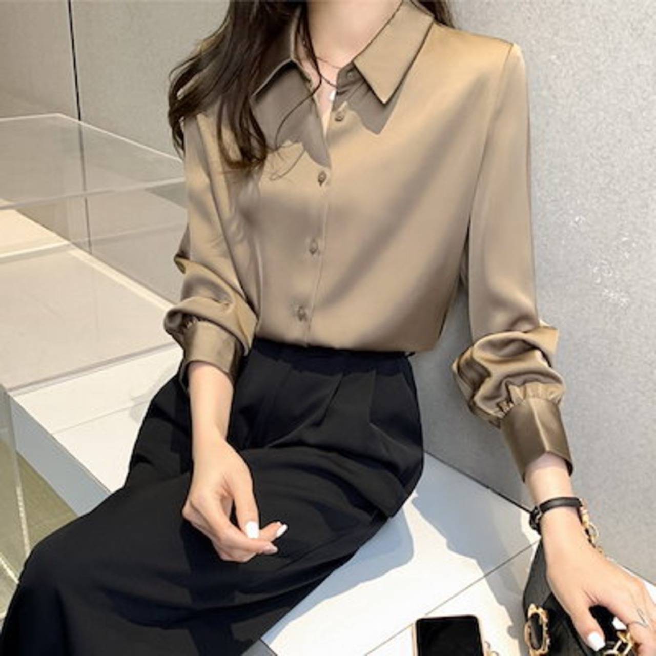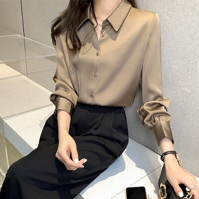 春先取りブラウス 春秋 長袖トップ ス シャツデザイン感シフォンキャリア通勤OLシャツ レディース 20代 30代 40代 トップス 2024シャツブラウスフォーマル シアーシャツ | coolcoool