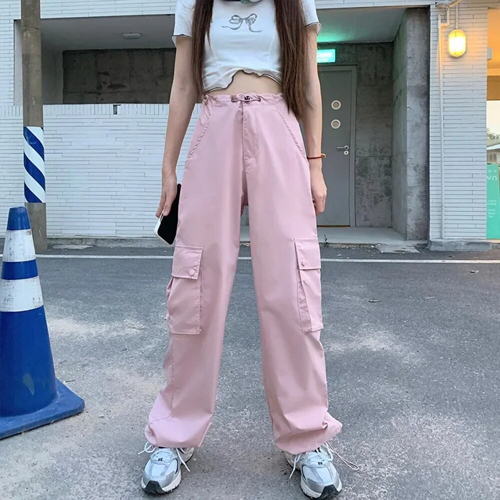 男性と女性のためのハイウエスト原宿カーゴパンツ,カジュアルなスウェットパンツ,通気性,速乾性,ワイドレッグ,痩身,夏,2023 y2k ボトムス T240902101417_01 | coolcoool