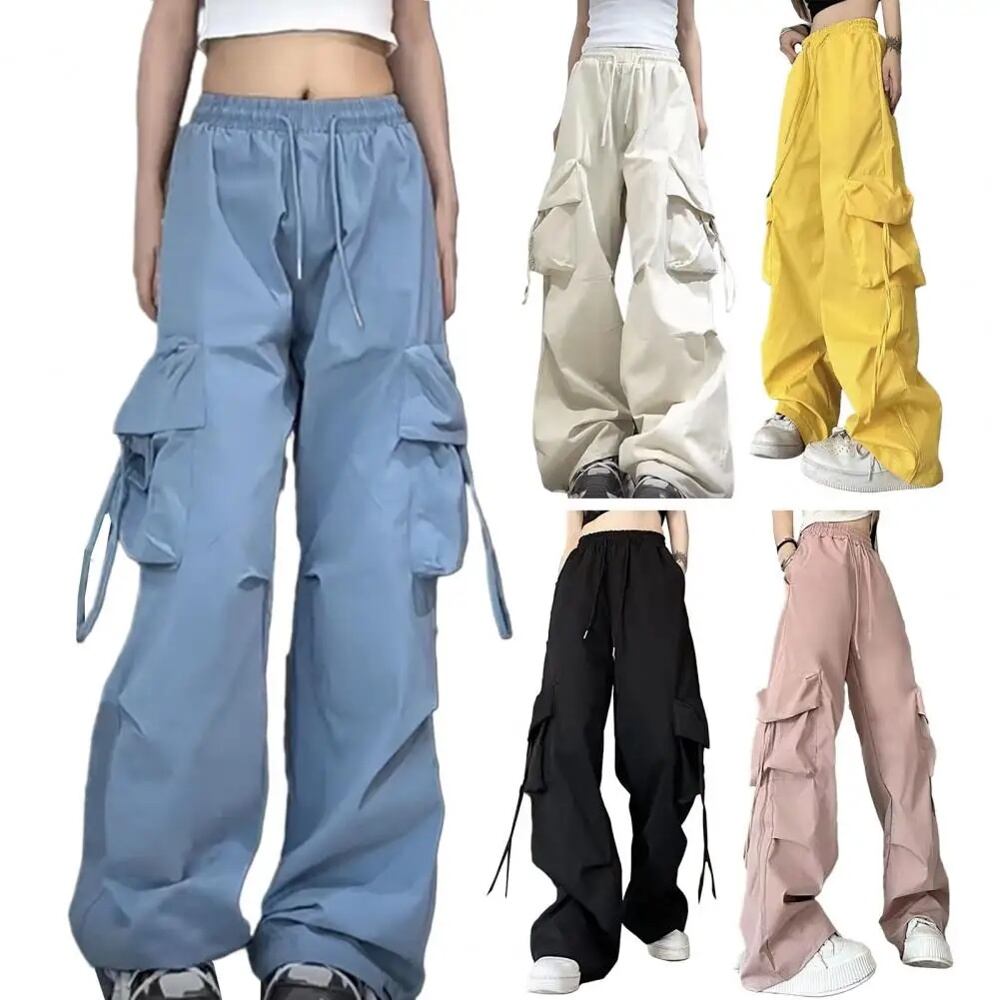 ドローストリング付きレディースカジュアルテックパンツ,ローウエスト,ワイドレッグパンツ,特大,カーゴパンツ,ストリートウェア y2k ボトムス T240902101905_05 | coolcoool