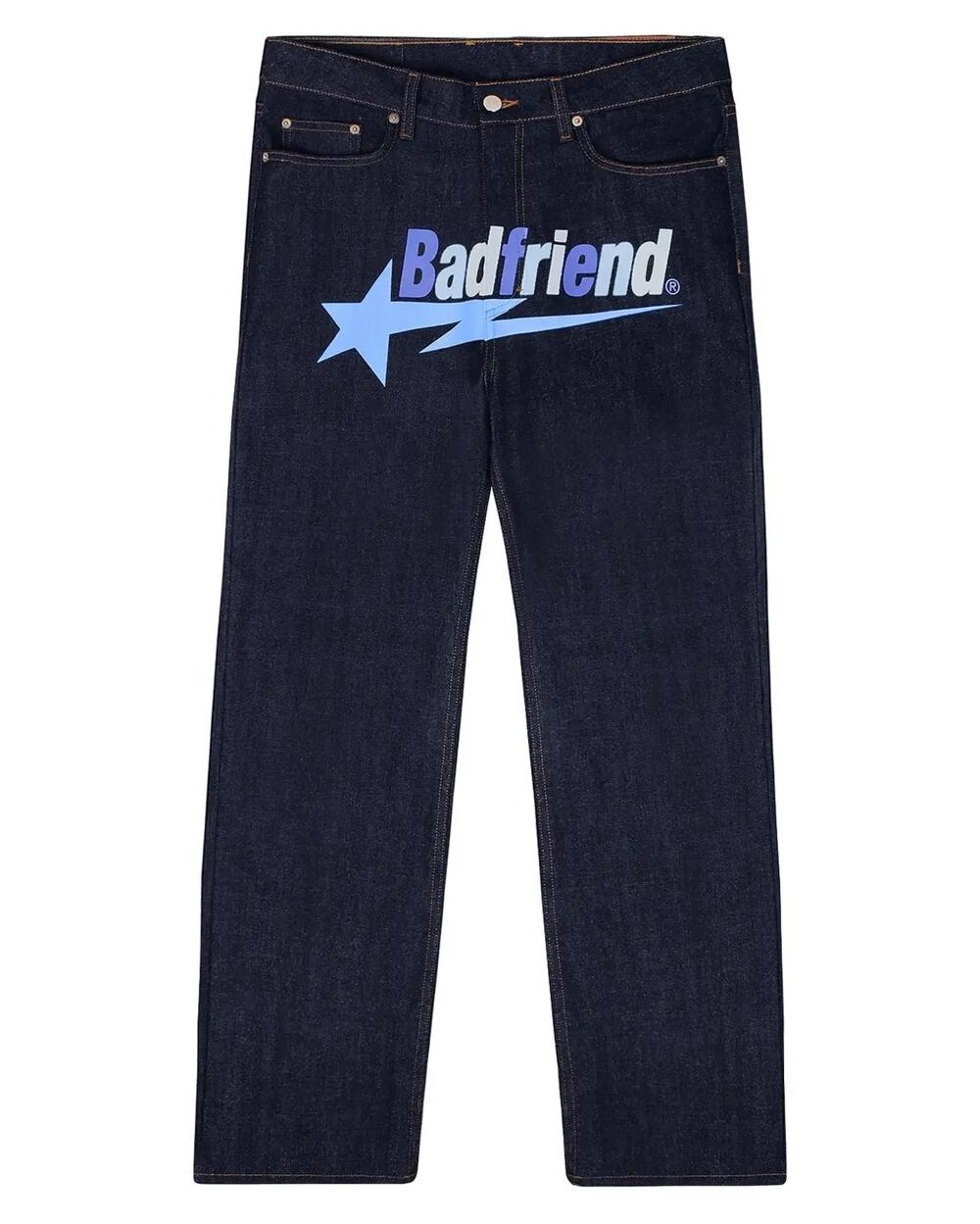 男性用レタリングプリントパンツ、y2kジーンズ、バギーパンツ、ブラックデニムパンツ、ワイドレッグパンツ、ヒップホップ、原宿、パンク、ロック、ストリートウェア、バッジフレンド、新しい y2k ボトムス T240902102153_10 | coolcoool