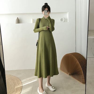 レディース ニット タートルネック ニットニットワンピース ロング 秋冬 韓国ファッション レディース ニット ロング 膝丈 A-C100