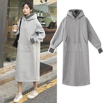 ロングパーカー パーカー フード付き 裏起毛 ワンピース マキシ レディース ボーダー柄 体型カバー アウター ゆったり 無地 大きいサイズ