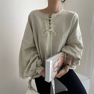 パーカー プルオーバーパーカー レディース 秋 プルオーバー パフ袖 長袖 無地 インナー トップス クルーネック 丸首 レイヤード 重ね着 カジュアル シンプル おしゃれ きれいめ ゆったり 体型カ | coolcoool