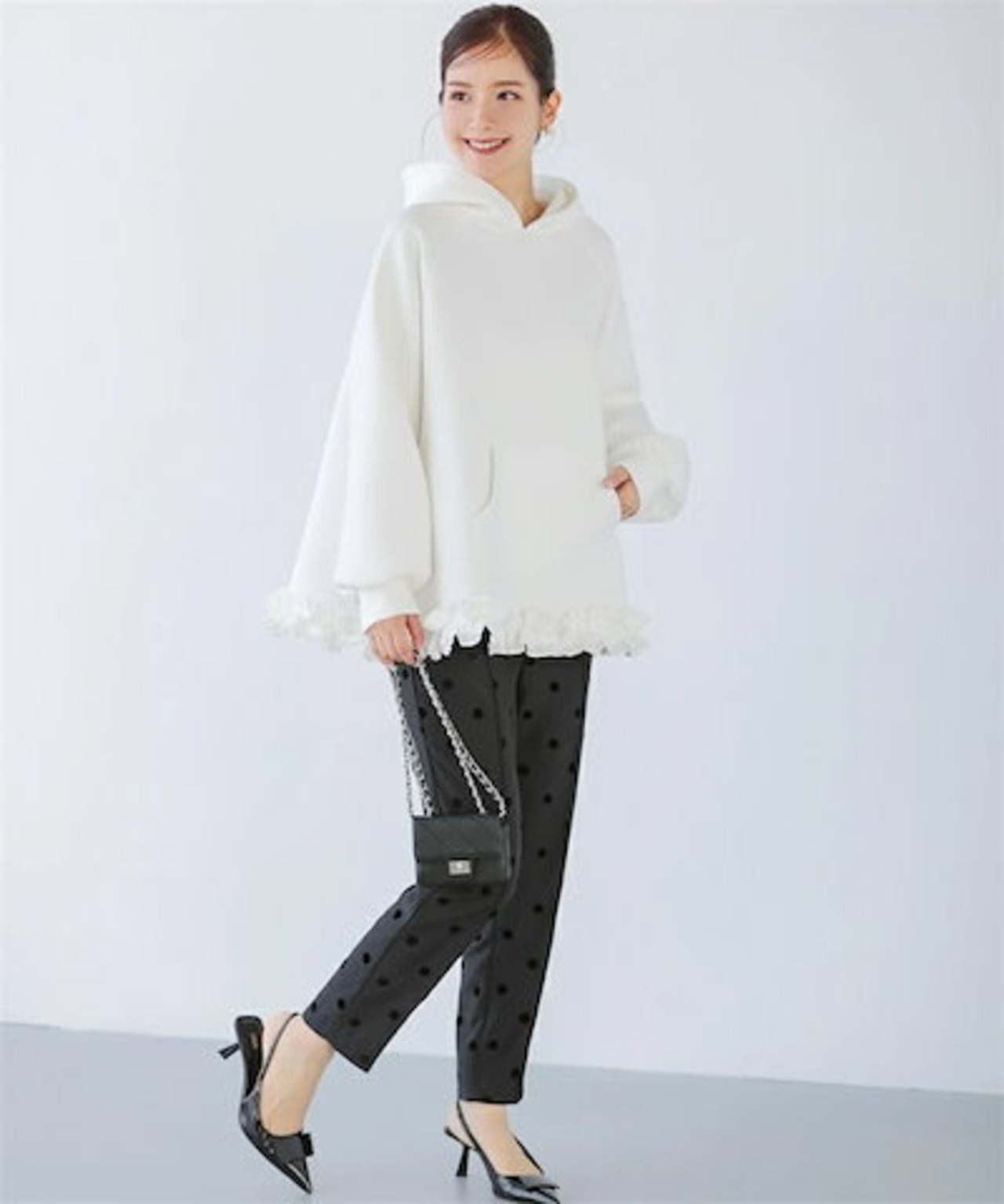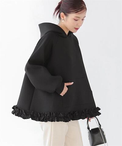 パーカー スウェット レディース 春 秋冬 レーナー フリル トップス 長袖 プルオーバー フード付き フレア チュニック アウター フーディー ゆったり 体型カバー おしゃれ 無地 シンプル ポケッ | coolcoool