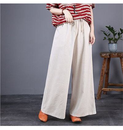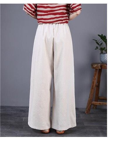 綿麻パンツ ワイドパンツ レディース チノパン 綿 コットン リネン 大人カジュアル 春夏 バギー ナチュラル ズボン ボトムス ウエストゴム 大きいサイズ ゆったり 体型カバー 薄手 オシャレ ファ